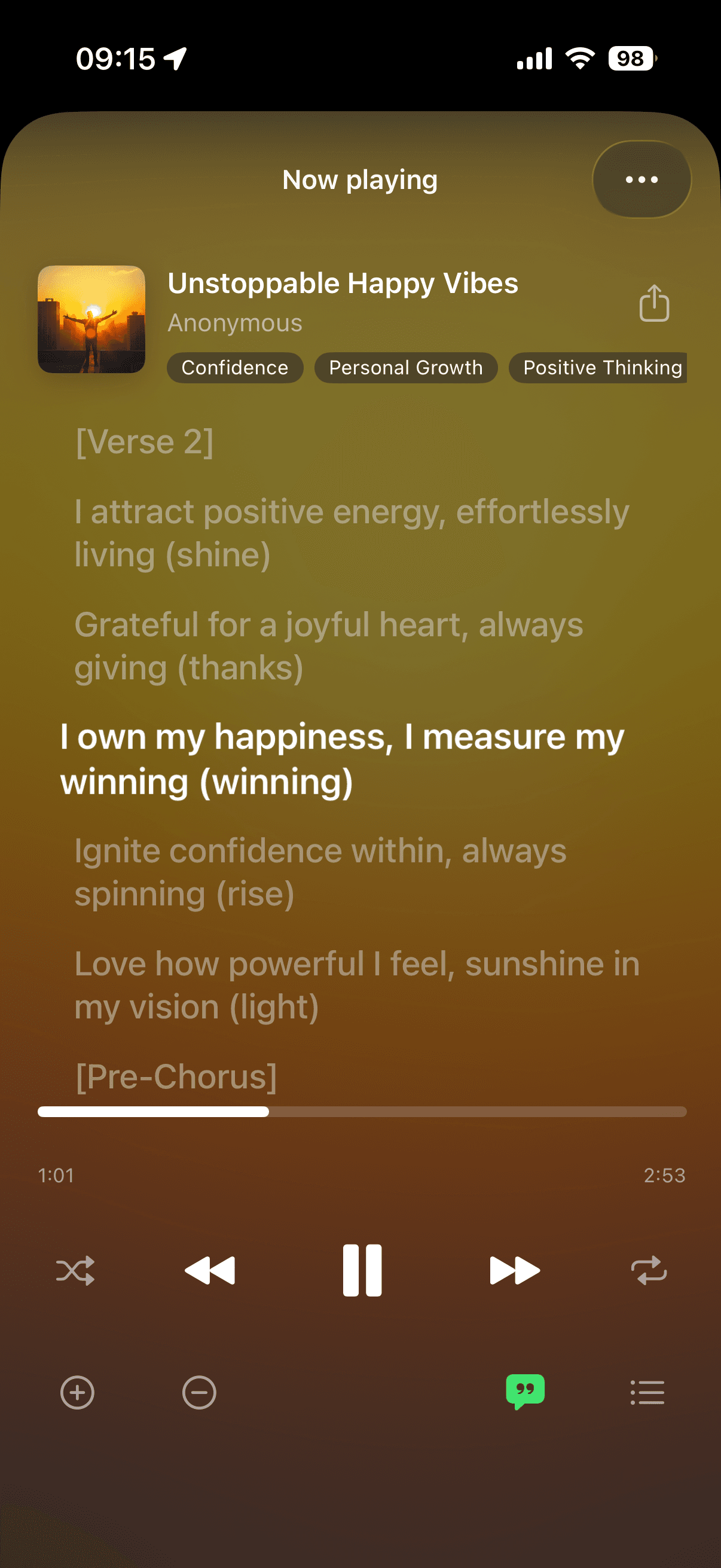 Your subconscious learns through rhythm, emotion, and repetition. By blending affirmations with music, Innertune helps you absorb empowering beliefs just by listening. Every replay strengthens new neural patterns and shifts your mindset naturally.